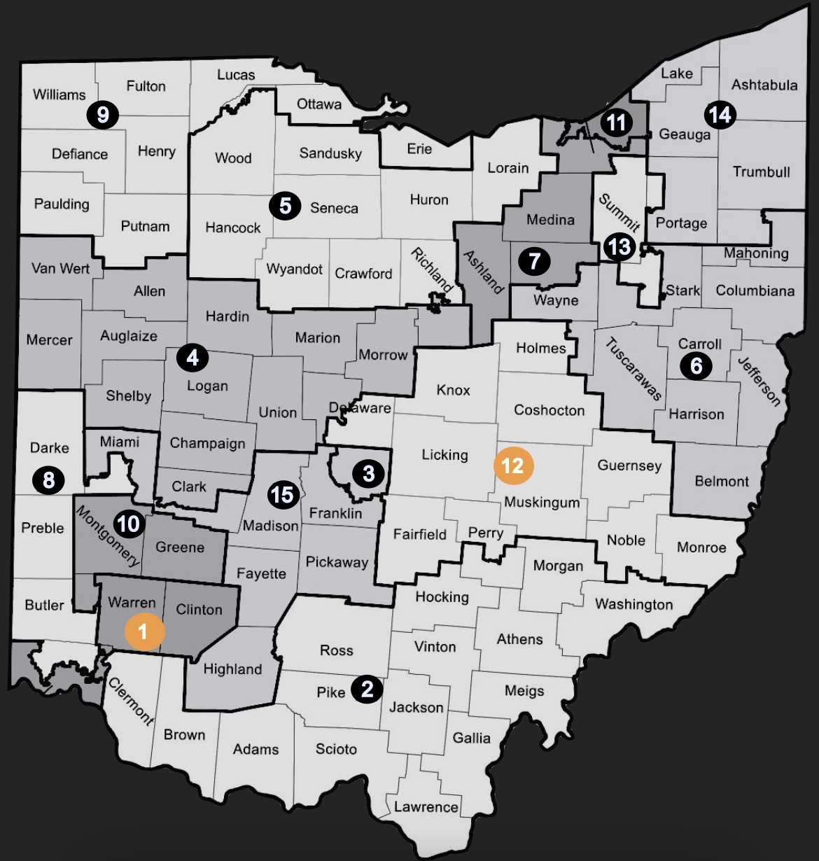 OH-15 includes western parts of Franklin county (including parts of Columbus), Madison, Pickaway, Fayette, Highland, & parts of Clark, Miami, & Shelby counties.